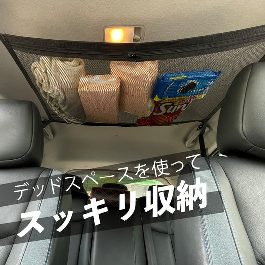 家族で使いやすい天井収納ネット 車用簡単取付 ファスナー付 大容量 軽自動車対応