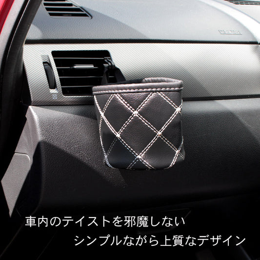 エアコン差し込み式 車用ドリンクホルダー レザー調 小物入れ 丸型 大人おしゃれ 簡単装着