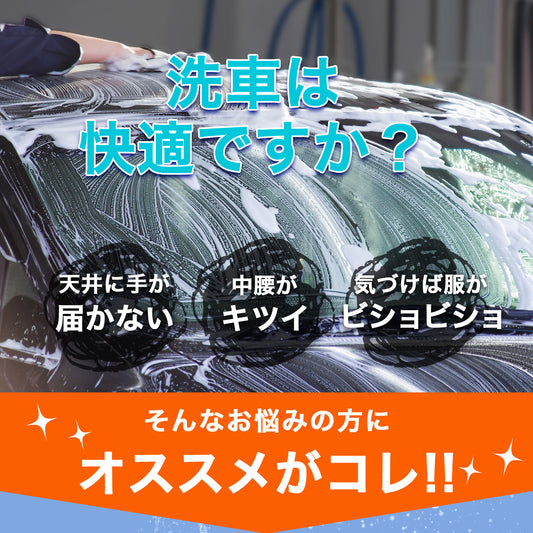 女性・シニアでも使いやすい 伸縮式洗車モップ125cm 軽量マイクロファイバー 回転ヘッドで高所もラク洗い