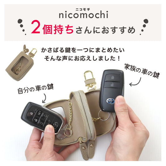 本革 スマートキーケース 2個収納 ダブルファスナー 軽量 コンパクト