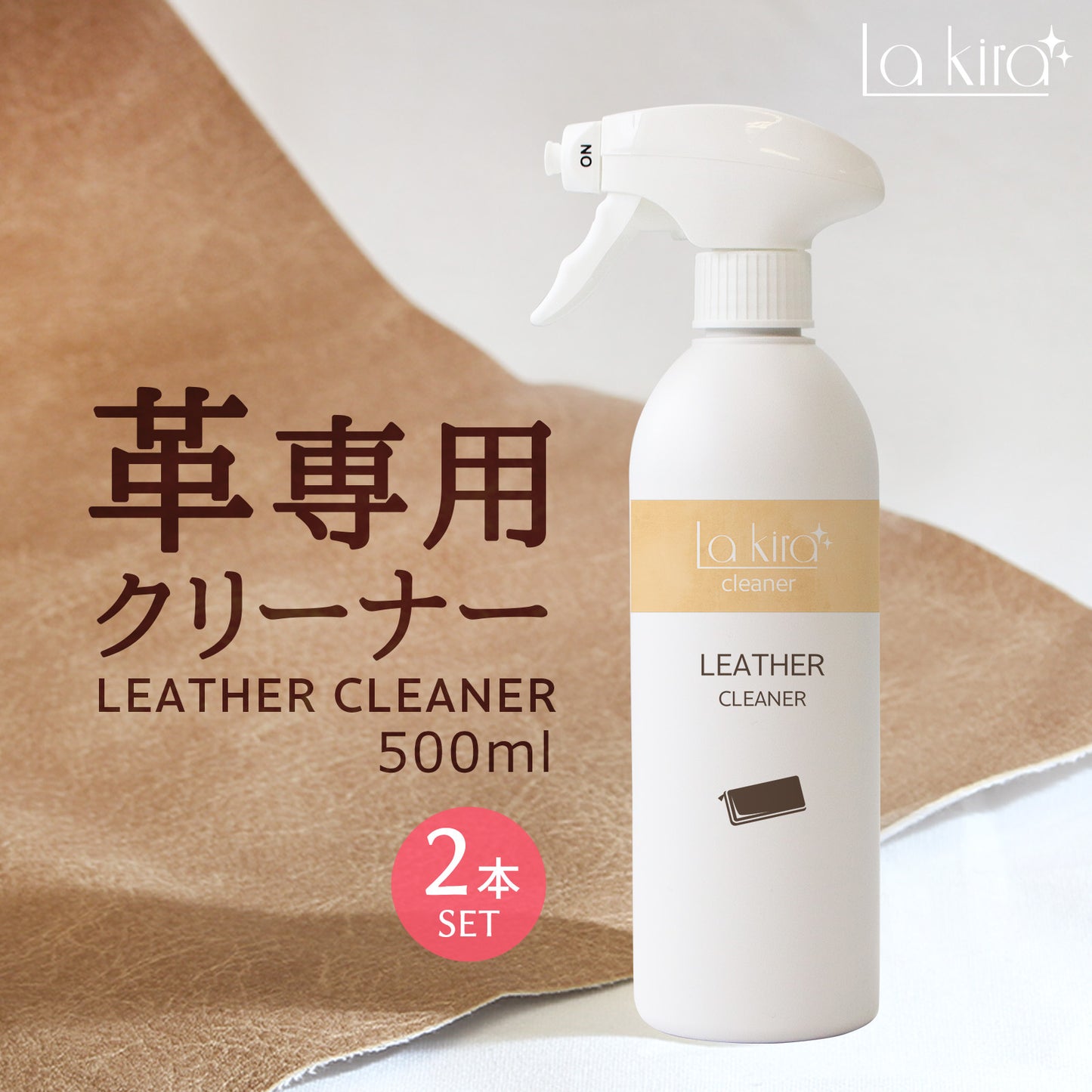 La Kiraの「革用品専用 レザークリーナー 500ml」は、本革・合成皮革・PUレザーなど、あらゆる革製品に対応した業務用でも使用されるクリーナーです。高い洗浄力と素材へのやさしさを両立し、革に蓄積した手アカや皮脂、黒ずみ、テカリをすっきり除去します。