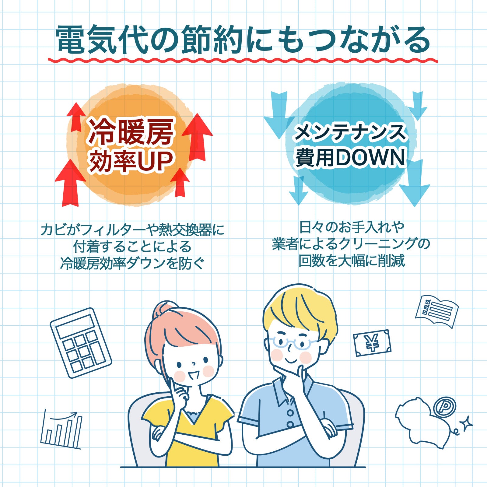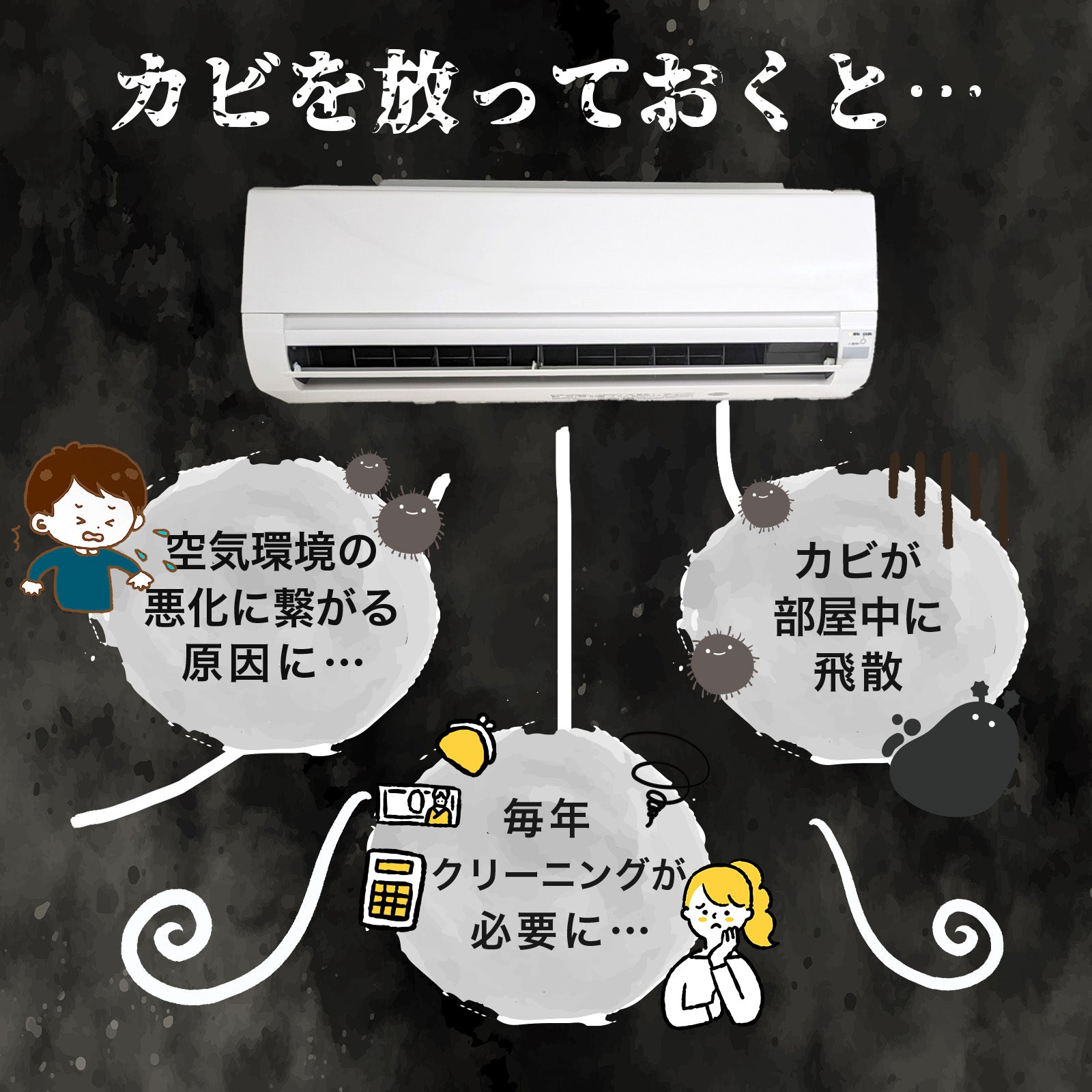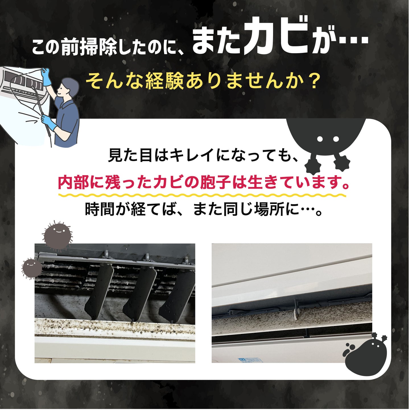 エアコンの内部に潜むカビの発生源をコーティングし、繁殖をブロックします。