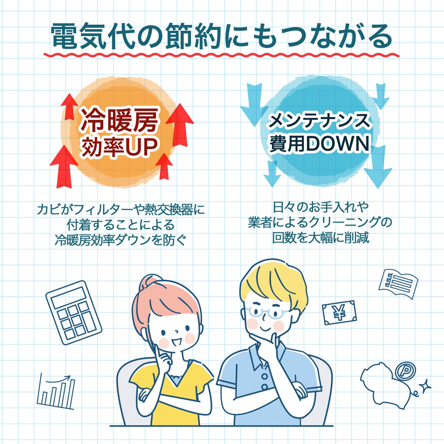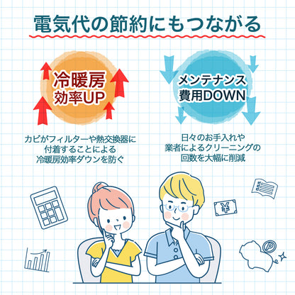 エアコンの使い始めや、エアコンクリーニング後の仕上げにおすすめ。
