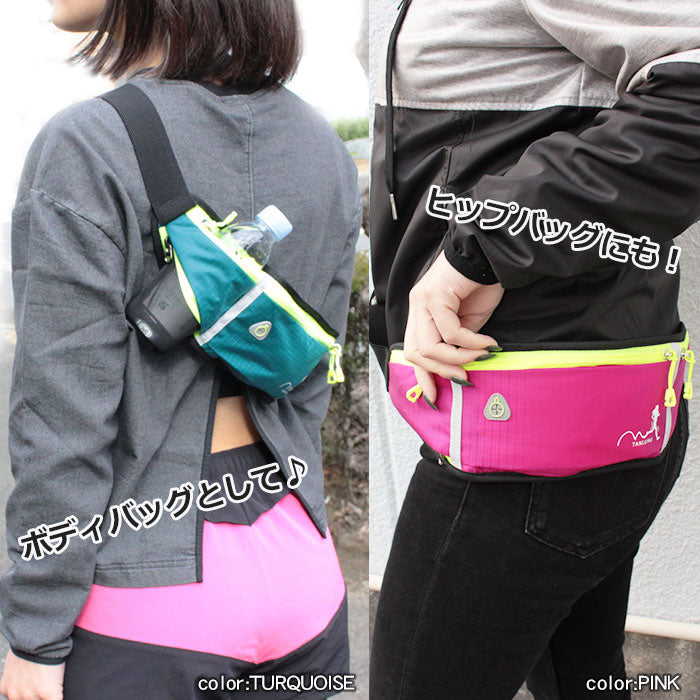 スマートフォンを入れて音楽を聞いたりとできる便利な、ウエストポーチです。